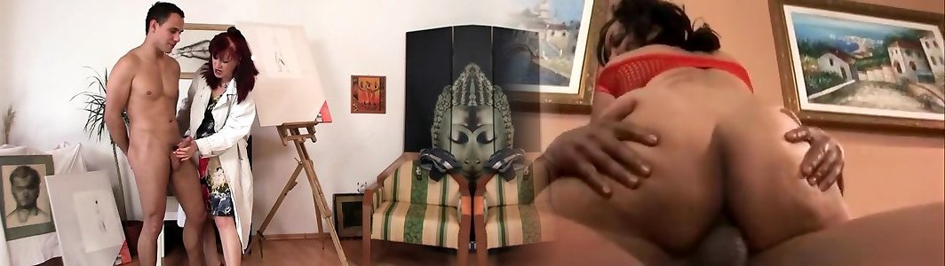 Clean-shaved gash ginger-haired mature paintress likes railing his man sausage