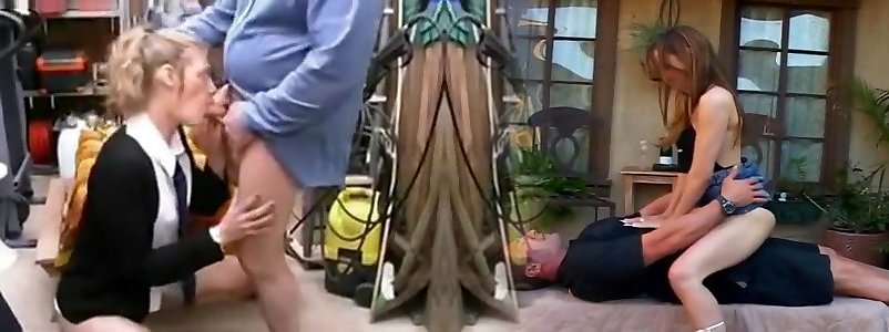 French college woman and the elder fellow in his shed