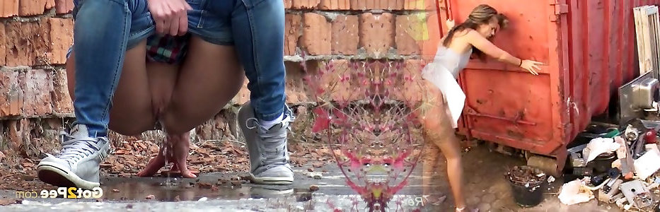 Promiscuous dark-haired sweetheart made a plenty of piss near brick fence