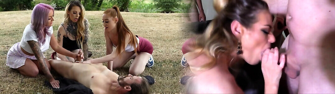 Gorgeous CFNM babes wanking guy outdoor