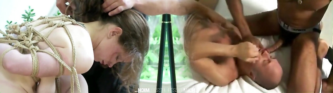 Open Mouth Ball-gagged Slave Bumpers Roped