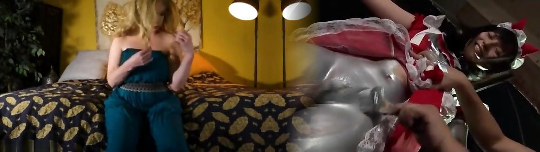Blond in latex Jacket on Sybian Saddle