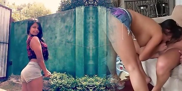 The stepsister and the cheater looked at each other with desire as their hands touched.